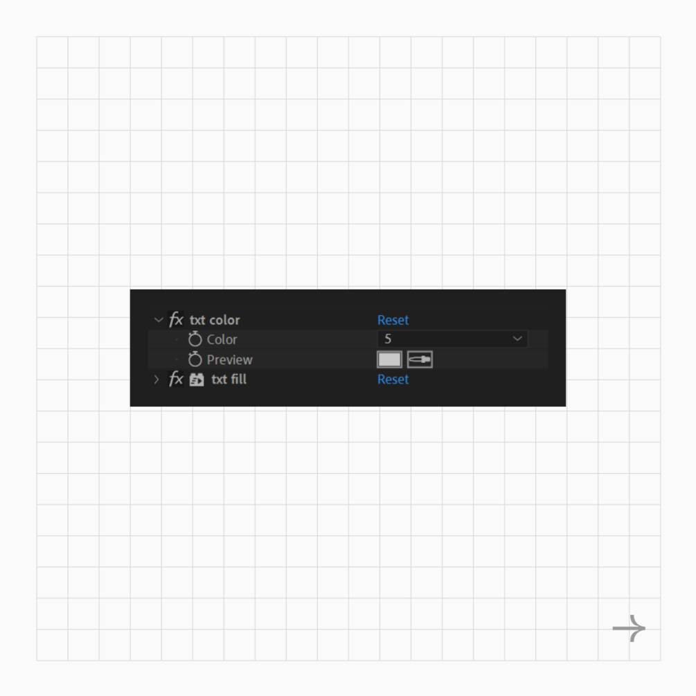 To assign a color to your text, apply the 'txt color' preset and select an option from the dropdown menu. If you make any changes to the palette, your text layers will update automatically.